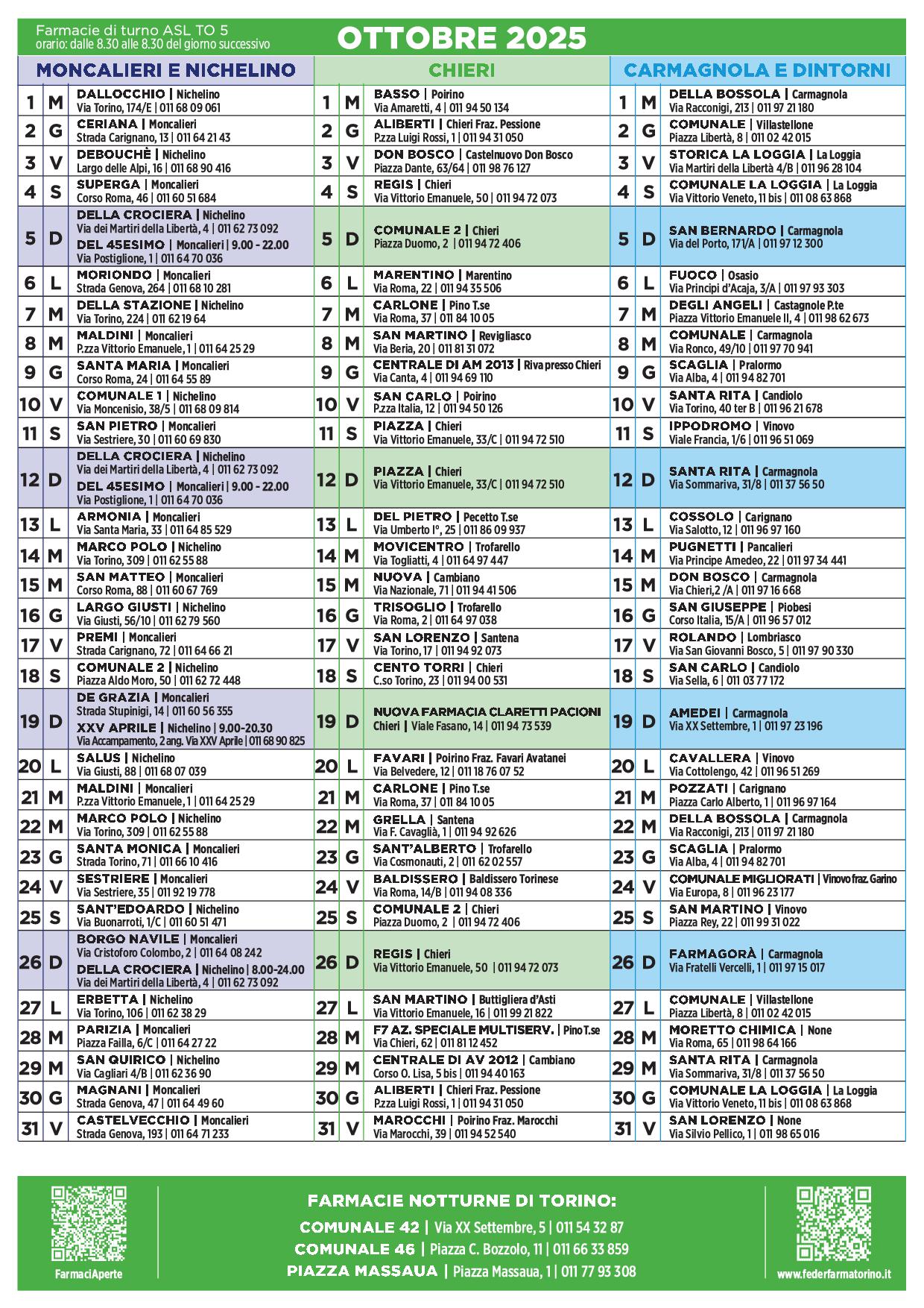 Le farmacie del distretto di Chieri sono quelle della colonna centrale .