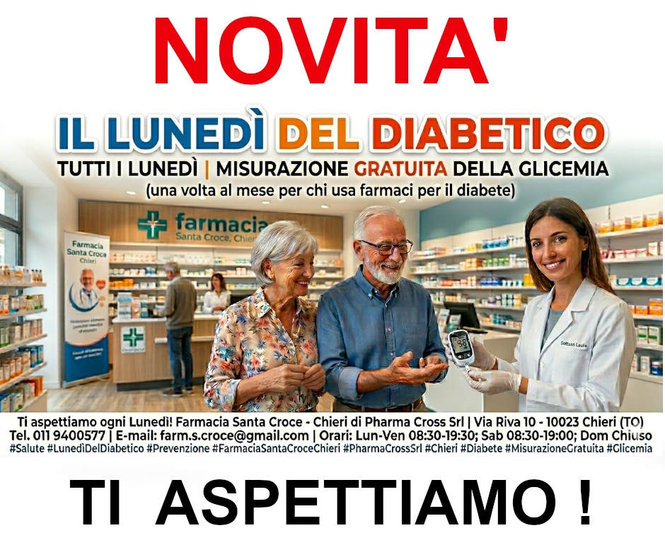 Nuova iniziativa di prevenzione : ogni Lunedì , se prendi farmaci per il diabete, passa in farmacia che la misutrazione della glicemia è GRATUITA ( una sola volta a l mese)